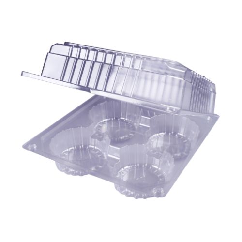IKON 4 Muffin Pack Hinged Lid Clear Container