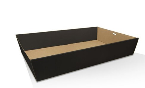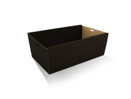 Classy black cardboard catering trays suitable for corporate catering and packaged gift hampers.MEDIUM PLUS provides that little bit more length & width than the standard medium catering tray.Available in a range of sizes, and clear window faced lids.