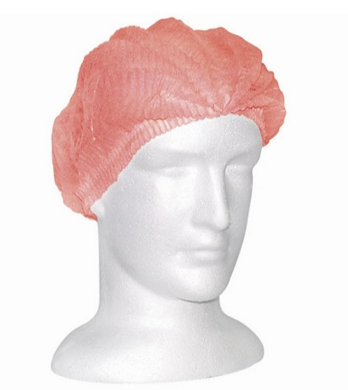 A bulk carton of 1000 red, 24-inch crimped beret-style hairnets designed for hygienic coverage in food handling, medical, industrial, and cleanroom environments. Each carton includes 10 bags of 100 hairnets each, ensuring efficient distribution and easy stock management. Made with 14 gsm non woven polypropylene.The disposable, breathable, and lightweight design promotes user comfort and hygiene, making it ideal for high-volume or regulated industries.