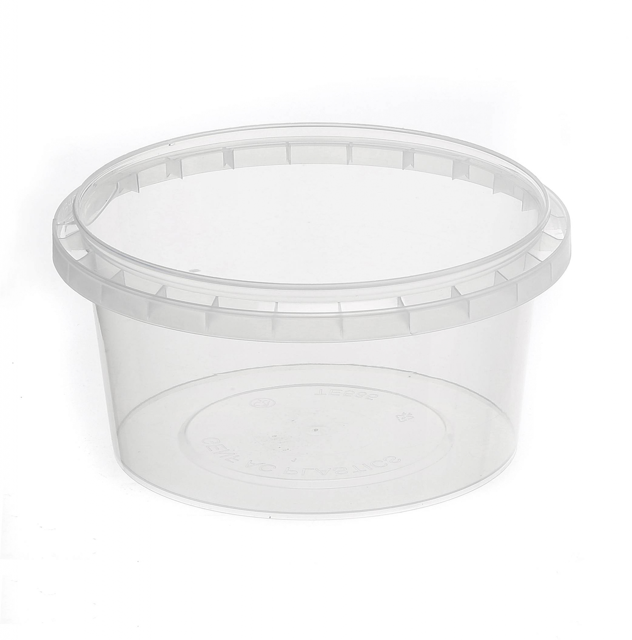 Round tamper evident container with 118mm base dimeter. This containers come in number of different sizes and have narrow or wide diameter option. They are perfect for any deli department for packing dips or number of different foods to be displayed on a shelf.